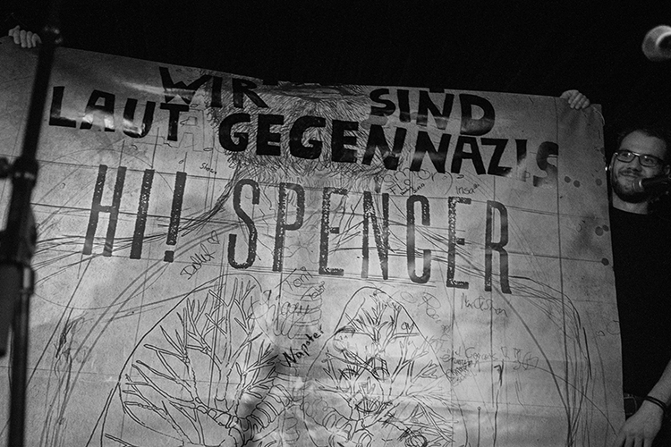 Auch die Lachmuskeln wurden angestrengt, als Sven Judith Williams von HSE Konkurrenz macht, eine Verschnaufpause nutzt, um den Hi! Spencer Merch zu präsentieren und mehr oder weniger gekonnt in Szene zu setzen. Aus Spaß wird auch wieder Ernst, als sie ihre Aktion für Laut gegen Nazis vorstellen. Gegen eine Spende darf sich jeder auf einem Backdrop verewigen und hat damit auch die Chance, das gute Stück zu gewinnen. Die Spenden, die im kommenden Jahr dabei zusammenkommen, gehen direkt an Laut gegen Nazis! Geniale Aktion – sehr unterstützenswert!