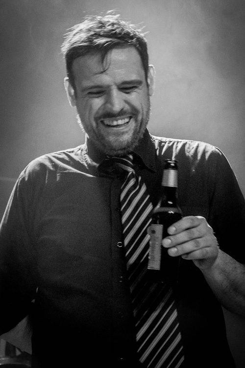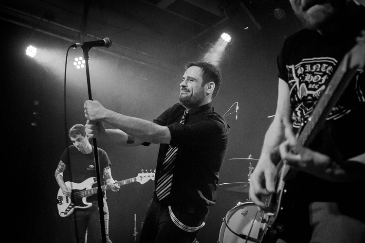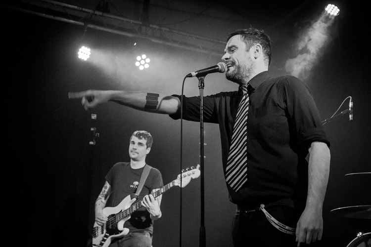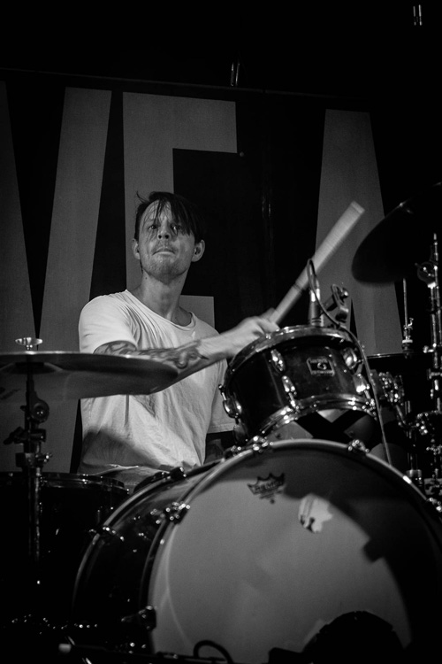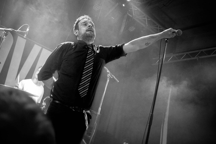 Währenddessen verausgabt sich Jörkk vollends, sodass am Ende weder Wasser- noch Bierdusche die völlige Resignation vor dem letzten Lied verhindern kann. Obwohl er zwischen den Songs immer wieder am Bühnenboden verschwindet, sind er und seine drei Mitstreiter in Hochform. Wenn man es zulässt, spielt sich diese Band in Körper und Seele. Deswegen bin ich nicht die einzige, die sich zwar regungslos am Hallenrand anlehnten und gleichzeitig ganz offensichtlich völlig in dieser Musik versunken ist.