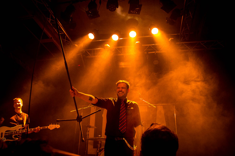 Heute bin ich aufgeregt. Denn ich darf meine Helden des lyrisch-akustischen Irr- und Wahnsinns fotografieren. Dabei ist doch nichts neu. Nicht mal die Vorband: Matches besteht zu 50% aus Love A-Mitgliedern, die sich wie Jörkk Mechenbier für zwischendurch andere Spielwiesen gesucht haben. Leider spaltet diese Formation das Publikum. Die Garage-Punk-Rock-Songs klangen oft so gleich, dass das vereinzelt Verwirrung aufkam, wann Köln denn nun zu klatschen hat. Aus anderen Ecken vernahm man dafür Geil!-Rufe. Ich gehörte zu der unbegeisterten Fraktion, lege euch aber ans Herz, sie sich selbst mal anzuschauen. Studio-Material gibt es nämlich noch nicht.